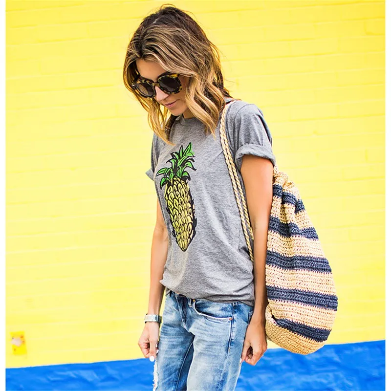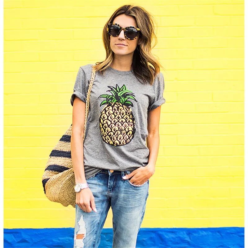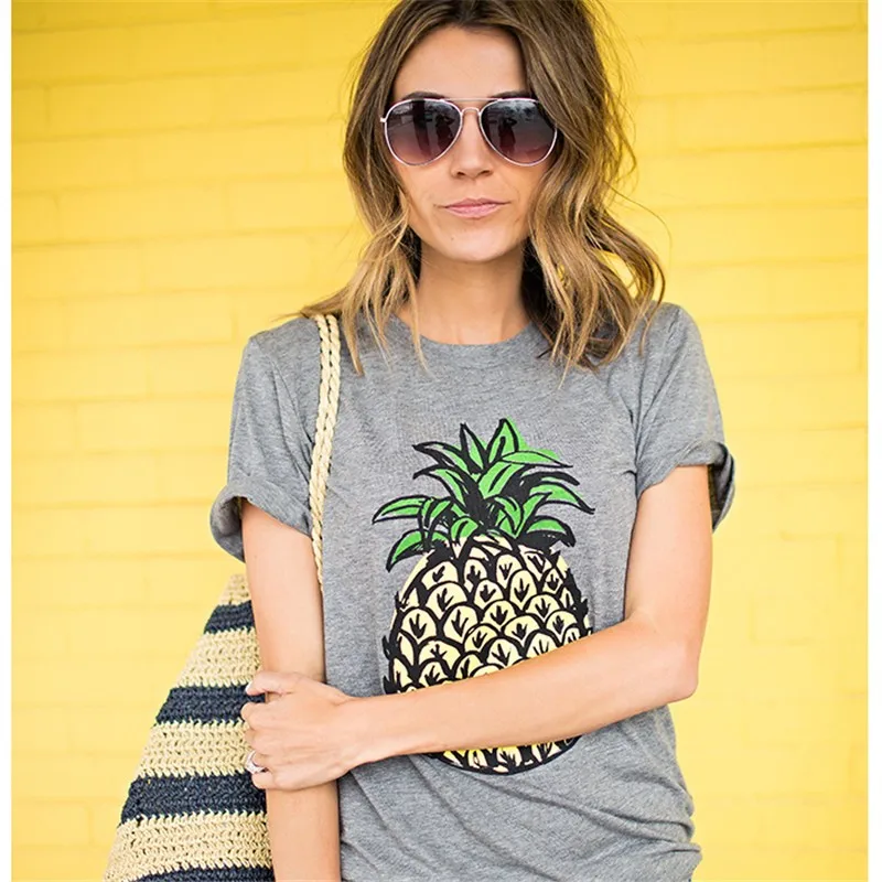 Product Name:2016 New Fashion Pineapple Printed Gray Women T shirt