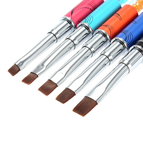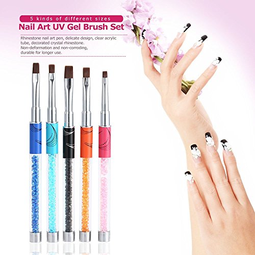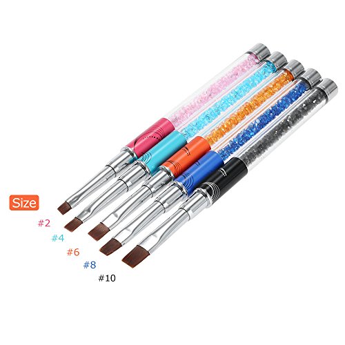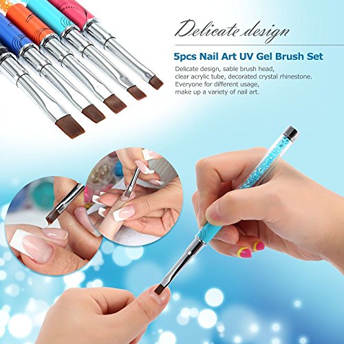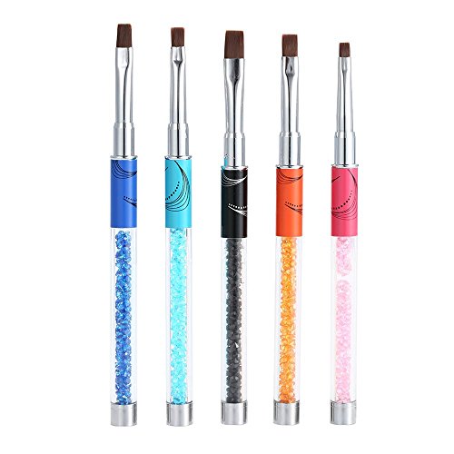 Features: 5 kinds of different sizes(#2,#4,#6,#8,#10), meet a complete set of Manicure process requirements. Delicate design, sable brush head, clear acrylic tube, decorated crystal rhinestone. Everyone for different usage, make up a variety of nail art. Non-deformation and non-corroding, durable for longer use. Metallic body, studded with rhinestone, comfortable and easy to handle. Great for fine nail art work, suitable for professional use and home use.