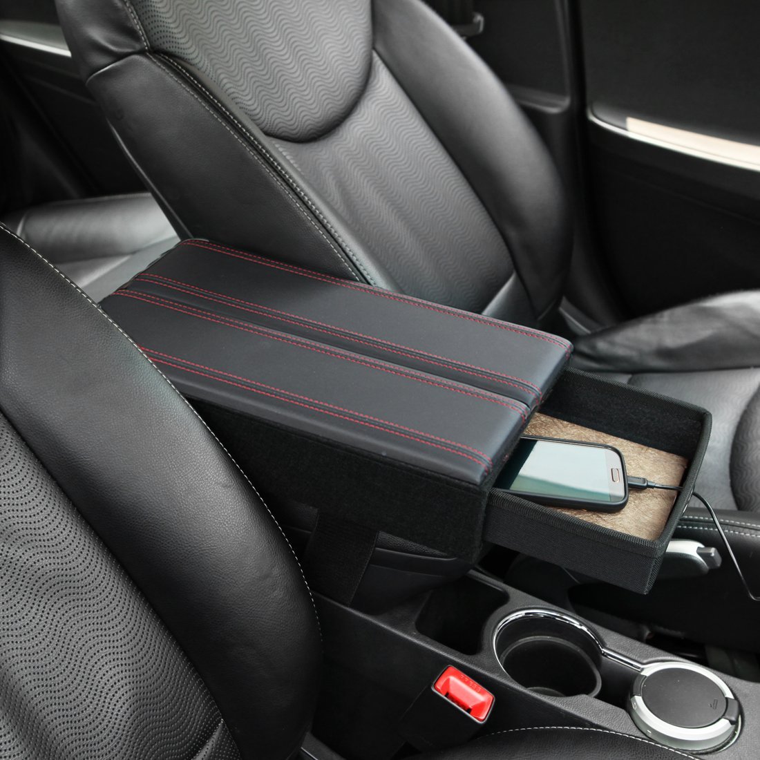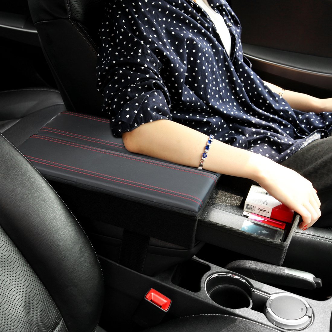 KMMOTORS Arm cushion, drink holder, storage three functions are one!