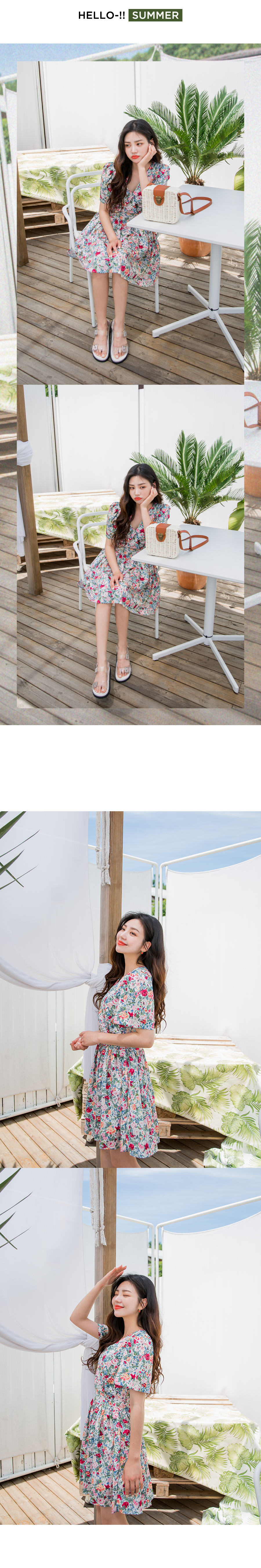 MD COMMENT걸리시하면서도 페미닌한 무드의플라워 미니원피스에요 V네크라인으로 목선이 여리여리하게 연출이되구요 치마 밑단 플레더 실루엣으로 다리라인은 길어보이면서 슬림하게~ 어깨 퍼프디테일로 어깨선이 예쁘게보이면서 여성스러운 이미지 연출과 싱그러우면서도 매력적인플라워 패턴으로 화사한 캐주얼룩으로도 부담없이 즐기시기 좋은 아이템이에요!