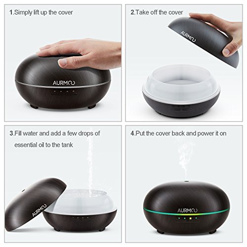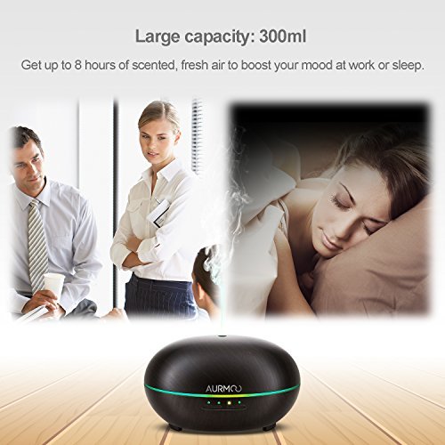 Aromatherapy Essential Oil Diffuser 300ml, AURMOO Wood Grain Ultrasonic Diffuser for Essential Oil, Cool Mist Humidifier, Waterless Auto Shut-off and 7...
