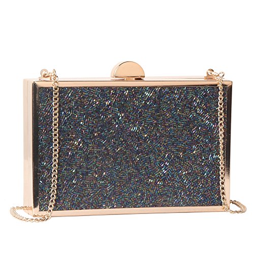 -. Feature : *Imported / *Dimension:6.25" x 4.63" x 1.50"(LxHxW) / *Feature: stylish designed halfmoon shape lock closure, high quality metal fittings in nice light gold finishing, body with special tube beads material, it's boho and exotic evening handbags for night out, party, prom, masque party and family reunion, when you carry this exotic bag, it will make you impressed / *It's stylish party bag which have enough space to carry cell phone, car keys, mirror, and some cosmetics, and the interior of bag is with slip pocket to hold accessories and value items, you can hold this bag in hand as clutch, or cross over the shoulder using the straps chain / *Strap chain is long in 120cm, strap middle drop is 23.63", and the strap chain can be removable