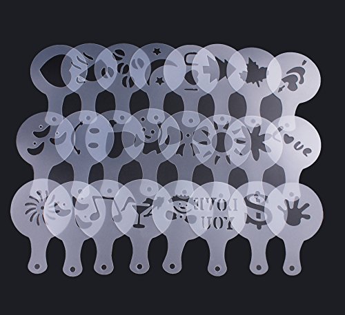 BIHRTC 24 Pcs 23 Designs Cappuccino Latte Barista Coffee Art Stencils Template Strew Pad Duster Spray Art + 1pc Coffee Latte Art Pen