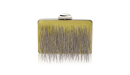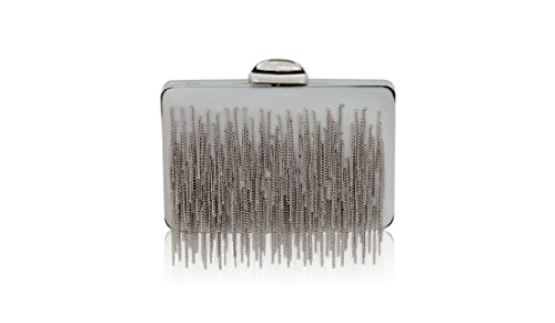 Product Description Fashion-forward chain fringe adds a sense of movement to this chic silk minaudiere. A beautiful evening bag for special occasions such as weddings, galas and cocktail parties, this fringed mini clutch makes a great party bag. Wear it from its short chain or slip the chain inside to carry it as a stylish silk clutch. 0