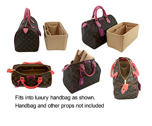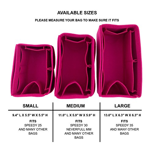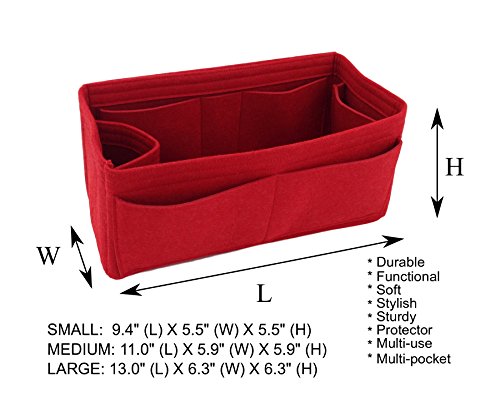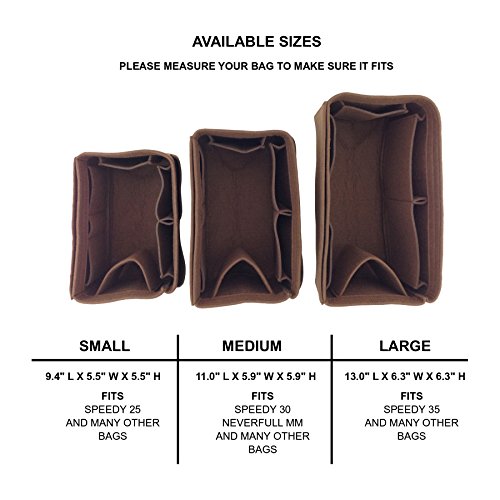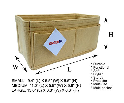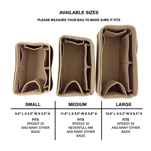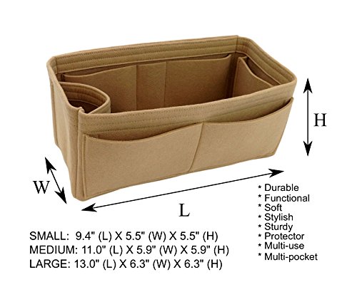 Why this Organizer? 1) It will make you look great by keeping your bag in shape and organized. 2) It is light weight, durable, and easy to clean. 3) Made of high quality, soft, durable and sturdy 3mm felt fabric, it will provide years of protection for your bag. 4) Comes with 10 pockets, providing you with ample storage compartments.? ?Keep your personal items in order and keep things from moving around. 5) It can also be used as a diaper, sewing, toy, art and pencil storage bag. Perfect for travel. Size Chart: Small: 9.4" L x 5.5" W x 5.5" H Medium: 11.0" L x 5.9" W x 5.9" H Large: 13.0" L x 6.3" W x 6.3" H Dimensions For Your Reference: LV Speedy 25: 9.8" L x 5.9" W x 7.5"H LV Speedy 30:11.8" L x 6.6"W x 8.2" H LV Speedy 35: 13.8" L x 7.1" W x 9.1" H LV Neverfull PM: 11.4" L x 5.1" W x 8.7" H LV Neverfull MM: 12.6" L x 6.7" W x 11.4" H LV Neverfull GM: 15.6" L x 7.9" W x 12.8" H Buy this organizer insert now so you can get organized, save time, protect your investment. Money Back Guarantee: Love it or we will return 100% of your money, no questions asked! 0 |