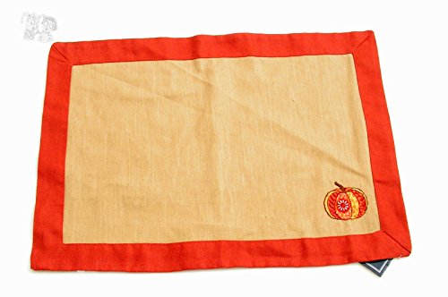 - Feature : Set of 4 place mats 13x19 inches / Art by Jennifer Brinley / Embroidered pumpkin / Canvas, burlap type of material / Matching table runner available.