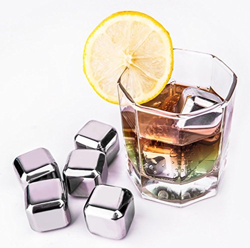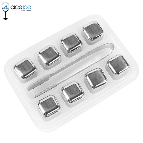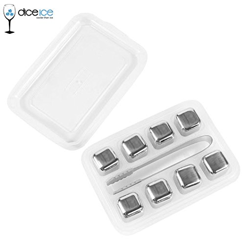 -. Brand : Dice Ice -. Color : Metallic -. EAN : 0693529493653 -. Feature : WHISKEY ROCKS. The item consists of 8 steel ice cubes or drinking stones or rocks, cooler and more fashionable than ice; keeps your drinks cool without diluting. Each cube is 2cm x 2cm x 2cm or 1" x 1" x 1" in dimension. The product also contains 5 1/2" steel tongs and a plastic chiller tray. / HIGH QUALITY. Shiny, strong, smooth and durable. FDA certified, food grade stainless steel non-toxic liquid-filled cubes are a non-diluting alternative to ice cubes, Dice Ice is manufactured by a premium wine and spirits accessories maker with an ISO 9001 quality manufacturing certificate. / ADVANTAGES OVER STONES: environmentally safe, reusable, and long lasting; won't scratch your drink wear! Do not give off a taste of stone and more durable and dishwasher safe! / EASY TO USE: Freeze the product for 3-4 hours or for best results, store in the freezer overnight; Great for whiskey, beer, scotch, bourbon, vodka, white wine and non-alcohilic drinks; NO DILUTION and retains the chill and flavor. Wash by hand or dishwasher then reuse again. / BONUS ITEM: Complimentary list of on the rocks of international mixed drinks to enjoy with your Dice Ice - see below! -. Label : Dice Ice -. Manufacturer : Dice Ice -. Model : DC-01 -. MPN : DC-01 -. PackageQuantity : 1 -. PartNumber : DC-01 -. ProductGroup : Kitchen -. ProductTypeName : KITCHEN -. Publisher : Dice Ice -. Studio : Dice Ice -. Title : Whiskey Rocks Stainless Steel Reusable Chilling Ice Cubes for Wine, Whiskey, or Other Beverages; Set of 8 with Tongs -. UPC : 693529493653