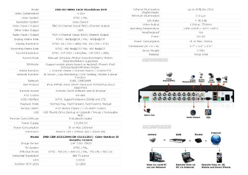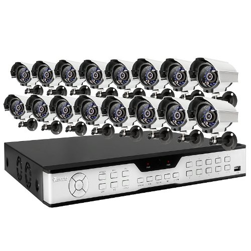 - Feature : ZMODO KDH6-BARCZ6ZN-1T 16 Channel Camera Monitoring System with 16 Outdoor Security Cameras w/480 TV Lines & 1TB HD / DVR Features: Plug-n-Play, Record: 480 fps, Display: 480 fps, Embedded Linux OS, IR Remote Control, PTZ via RS-485 Port, Signal System: NTSC / PAL, H.264 Hardware Compression, 1TB Hard Drive Installed, Video Input / Output: BNC 16/BNC 1, Video Output: VGA, Audio Input / Output: RCA 4/BNC 1 / Display Mode: Each / All / Auto Switch / Hidden, Network:RJ45 TCP/IP or DDNS, Remote Access: LAN or IE Browser, Support Remote View via 3G Mobile, Recording Mode: Manual/ Schedule /Motion Detection/ Alarm/ Motion Detection & Alarm / Camera Features: 1/4" Color CMOS Image Sensor, 480 TV Lines Horizontal, 3.6mm Lens, Signal: NTSC, Night Vision Min. Light: 0 Lux (IR On), IR Irradiation Distance: up to 30', Operation Temperature: 14F~122F, Weatherproof: Yes, Power: 12V DC, Mount: Wall, Video Connector: BNC, Power Connector: RCA 12V DC, Color: Silver / Package Includes: (1) ZMD-DC-SBN6 16 Channel Security DVR 1TB Hard Drive Included, (16) ZMD-CBR-BCS13NM(CM-C11613SV) Color IR Outdoor Security Cameras, (16) 60ft CCTV Power + Video Cables for Security Cameras, (4) 12V/1500mA Single Power Supply for Security Cameras, (4) 1-4 Splitter Cable for Security Cameras, (1) User's Manual, (1) IR Remote Control