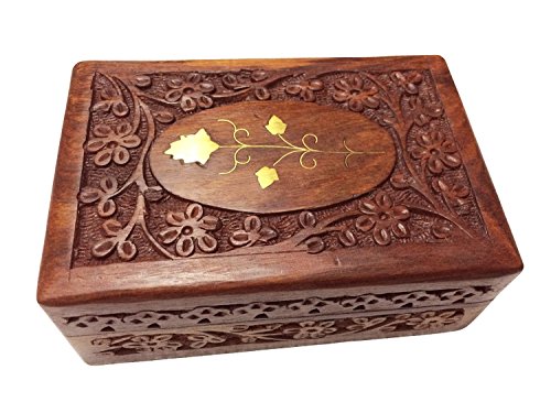 Thanks Giving Gift for Loved Ones, Beautiful Hand Carved Wooden Jewelry Box, Wooden Vintage Box Center Flower Brass Work, Keepsake Organizer Box, 6 X 4 Inch