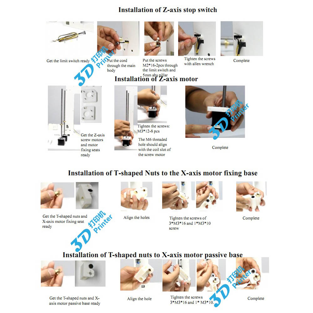 Note: Only part of the assembly instructions show below, for the whole and complete assembly instructions please refer to the assembling file and assembling videos on the DVD.