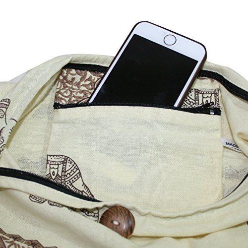 -. Feature : Fabric : Cotton / Size : Regular , 14.5" Width ,15" Depth / Shoulder Strap: Length of Strap: 41" / A main top compartment zipper and Inside zipper Pocket