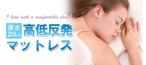 なんとこのマットレス、極上の寝心地を実現するために低反発5cm+高反発15cmの計20cmと極厚仕様!その寝心地は、まさに【雲の上のような寝心地】!まるで自分の型を取るがごとくぴったりフィットして、マットレスに「くるまれている」ような感じなんです!ああ、この感動は、とてもじゃないけど言葉では伝えきれませんっ!!このマットレスなら、スプリングのあるマットレスは必要なし。このマットレスの上にそのままシーツを敷くだけでOKなんです☆ 腰痛もちさんなどには「寝起きが全然違う!以前より痛みも気にならなくなったし…」と大好評!