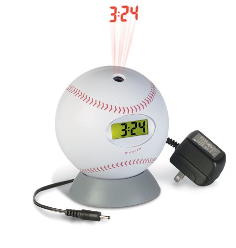 - Feature : Unique, eye-catching, baseball design / Projects time, month and date on the ceiling / Time can be displayed in either 12- or 24-hour format / Features a four-minute crescendo alarm with snooze function / Backlight