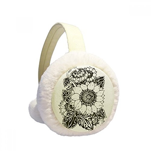 (DIYthinker)/Accessories/Cold Weather Accessories/DIRECT FROM USA/Sunflower Black White Flower Plant Winter Earmuffs Ear Warmers Faux Fur Foldable Plush Outdoor Gift