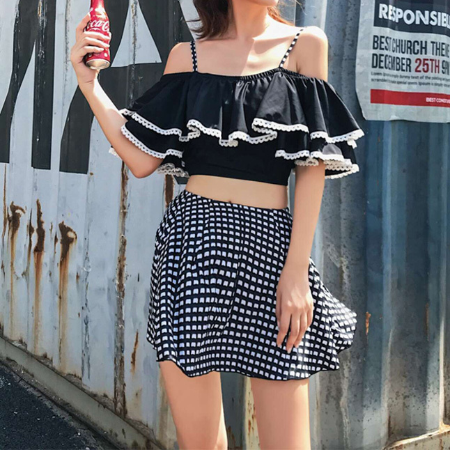 ギンガムチェックの3ピースフリル水着です☆