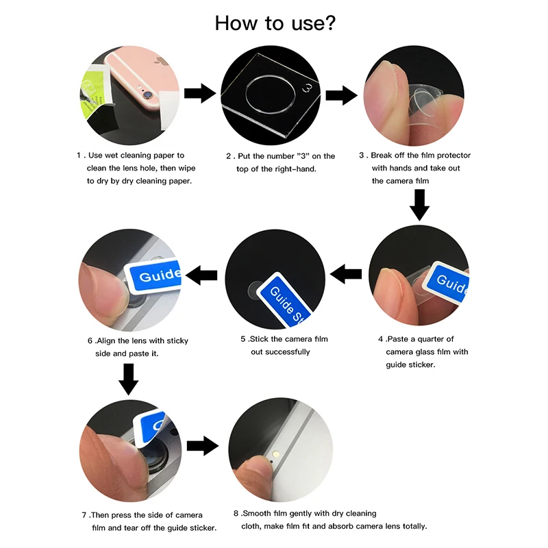 Function:Protect your phone camera from scratch,explosion and dust,etc.