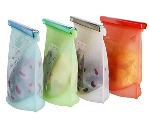 KiSL Home 4 Piece Reusable Silicone Fresh Food Storage Bag, Freezer Bag Quart, Ziploc Food Preservation Freezer Microwave Vacuum Seal