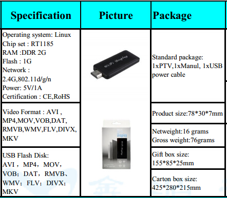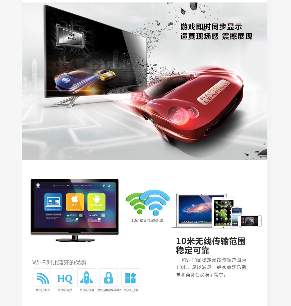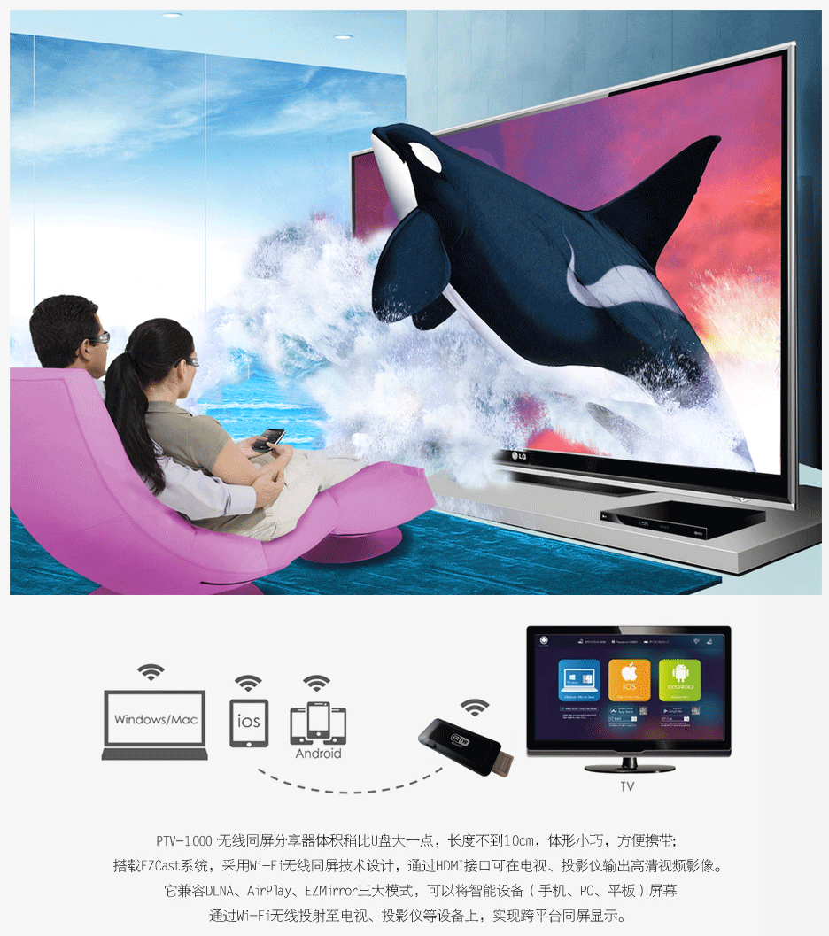 PTV HDMI Wifi Display Sharer for Smartphone/Tablet/PC/Playing Games