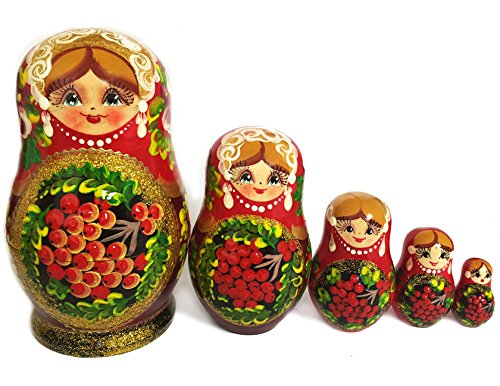 -. Title : Matryoshka 5 Piece Floral Nesting Doll 4 3/4 Inch Berrys