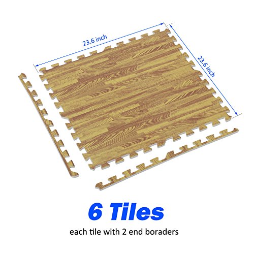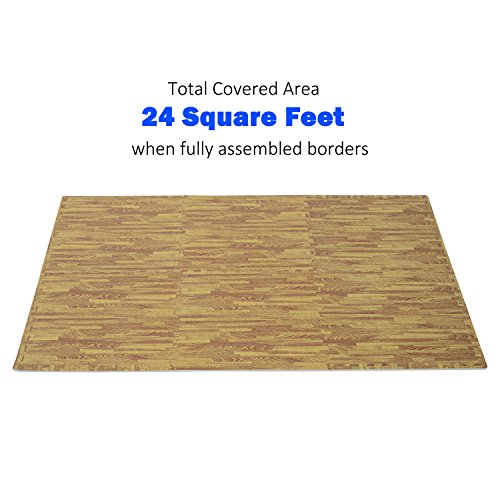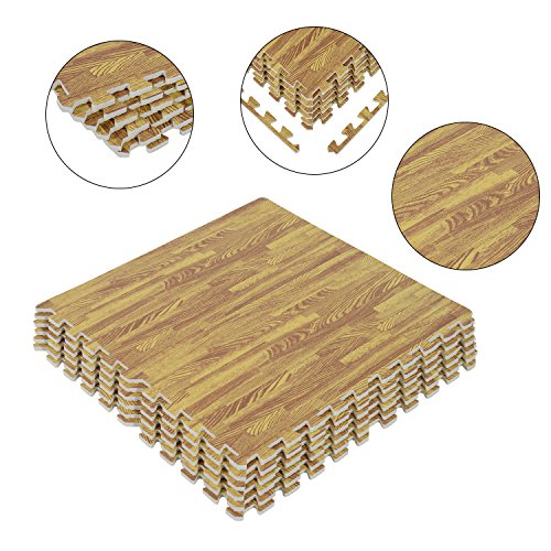 Studio : Soozier Publisher : Soozier Binding : Misc. Product Description New Interlocking Soft Wood Grain Foam Interlocking Eva Floor Puzzle Mat For Gym, Home! Looks Like Wood But It Not! You can install them in exercise studios, classrooms and daycares and more without any doubt. The interlocking mats are made of environmental free EVA material and come with natural wood grain color. This interlocking tile offers buffering for floor and is anti-shock. It can also insulate heat and sound, proof moisture and resist skid. What?s more, this durable mats also features chemical resistance, tear resistance, durable flatness. Out of shape? Crinkling? These must be the last thing happening to the tiles. Get a nice flooring surface and protect your floor with these amazing tiles from HomCom! Features: - 6 tiles Foam Mats and each with 2 end boarders which is easier to give a clean edge - Each tile measures 24"L x 24"W x 0.25"T, which covers a total of 24 square feet of space - Outer edge of the mat can be removed to reveal another interlocking tiles, so that more mats can be added at anytime of needed - Made of high density, non-toxic, anti-slip EVA foam - Water resistant, tear resistant, moisture proof and impact absorbent - Suitable for in-home use, gym floors, play areas and more - Pass CE ASTM F963-11 and CPSIA test Specifications: - Material: EVA - Set of 6 piece - Net Weight: 3.41lbs - Single Mat Dimension: - Single Mat Dimension: 24"L x 24"W x 0.25"T - Overall Coverage Area: 24 SQFT