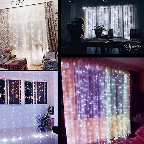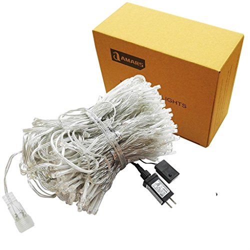 AMARS Bedroom Wedding String LED Curtain Lights Indoor Outdoor Waterfall Window Lights LED Lights for Party, Home, Living Room (White, UL Listed,9.8 Feet)