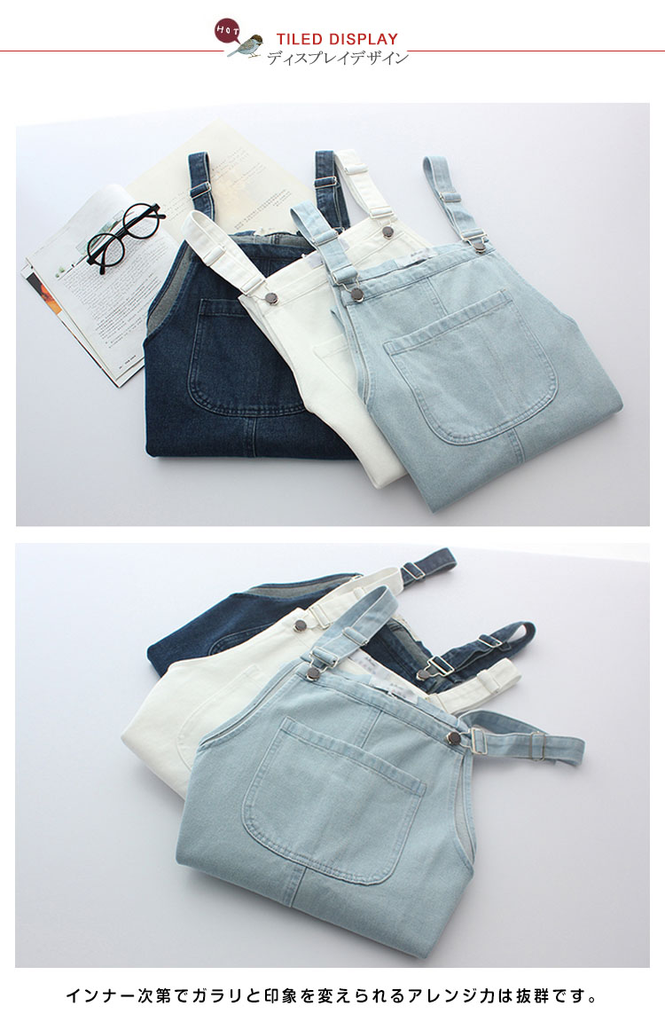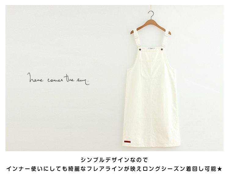 | オールシーズン使えるデニムサロペットワンピースの登場!インナー次第でガラリと印象を変えられるアレンジ力は抜群です。ルーズシルエットがラフ可愛く、ヘビロテ必至な1着。シンプルデザインなのでインナー使いにしても綺麗なフレアラインが映えロングシーズン着回し可能★ | |