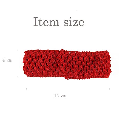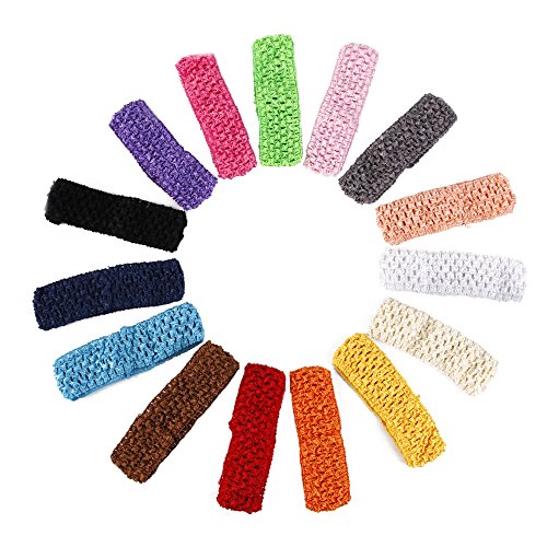 Size:Approx. 5.2 inch (length) x 1.5 inch (width) Material:100% Polyester with great stretch,comfortable for baby girls to wear. Package set includes 15pcs in different colors. Great Stretch makes it fit for most heads,especially for infant, baby girls, toddler, and young children. Perfect for any occasions and festivals:wedding,parties,bridal showers,birthday,picnic,Christmas,New Year.