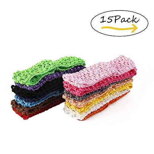 Studio : David accessories Publisher : David accessories Binding : Apparel Product Description Baby Girl 1.5' Crochet Elastic Headbands Stretch Hair Bands Hair Accessories Mixed Colors Pack of 15