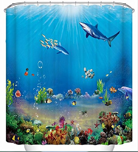 3D Digital Printing Shower Curtain with Hooks (Treated to Resist Deterioration by Mildew and Waterproof) - 72 x 72 inches,Blue Ocean World
