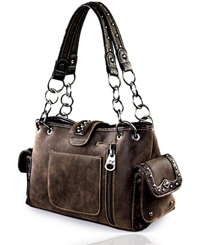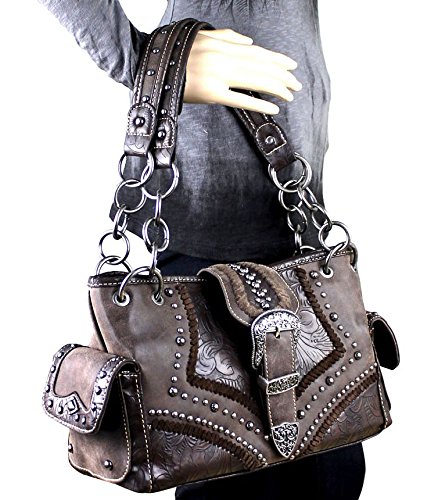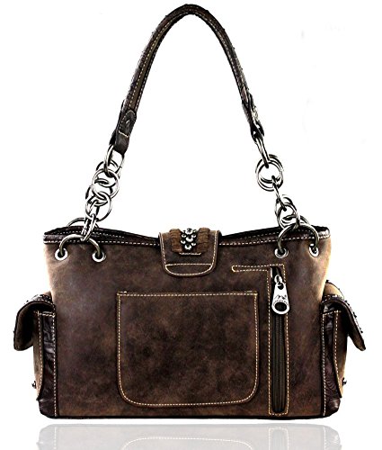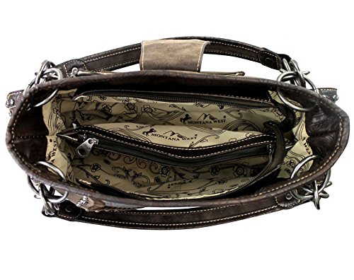 Montana West Concealed Carry, Floral Embossed Western Bag w/ Side Pockets- Red