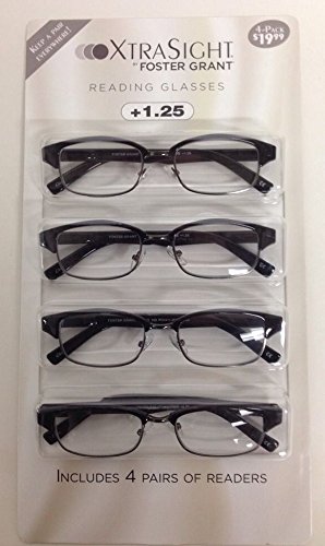 -. Title : 4 Pack FOSTER GRANT Rob Black READING GLASSES +1.25 CB Scratch Resistant NEW