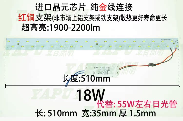6w  长: 410mm  宽:18mm 厚1.5mm