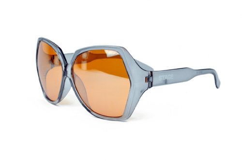 Studio : HRP Distributing Publisher : HRP Distributing Binding : Eyewear Product Description Let's face it - you're a diva, so let the world know it. Not only are these STAGE Diva sunglasses in vogue, the lenses are UV400 rated and have an anti-scratch coating. Available in six styles -- Black Frame with Mirror Smoke Lens (bright light), White Frame with Mirror Smoke Lens (bright light), Clear Gray Frame with Mirror Blue Lens (low light/indoors), Clear Gray Frame with Mirror Orange Lens (low light/indoors), Clear Gray Frame with Mirror Pink Lens (low light/indoors), Clear Gray Frame with Mirror Yellow Lens (low light/indoors). 0