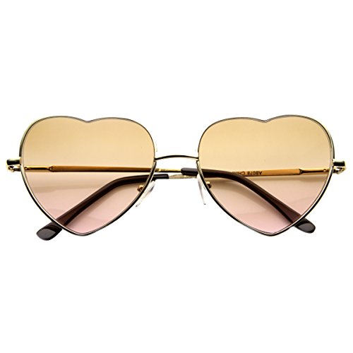 zeroUV - Small Thin Metal Heart Shaped Frame Cupid Sunglasses (Gold Rose)