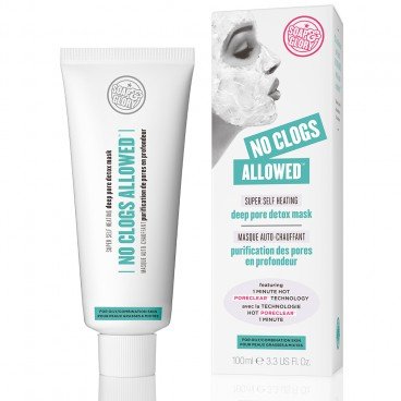 -. Binding : Misc. -. Brand : SoapAndGlory -. EAN : 0701359905335 -. Feature : It deep cleans, melts away pore-pling sebum and softens keratinised skin cells to prevent breakouts and blemishes. Just massage on, and stop when the paste changes from yellow to blue. / No Clogs Allowed : is perfect for weekly use on areas prone to blackhead build-up, or more often as a deep-oil-lsifying, detoxifying face mask and all-round scrubby WONDER! / 1-MINUTE HOT PORECLEAR TECHNOLOGY - a fast-acting, smoothing and polishing blend of micropumice, salicylic acid and hot clay, which activates with water contact / unique COLOUR-CHANGING TECHNOLOGY - (blue indicates when it's activated) • PLUS surface-polishing micro beads • use weekly on areas susceptible to blackhead build-up • strategically formulated for oily/combination skin / Ship from Thailand with registered tracking number -. IsAdultProduct : 0 -. ProductGroup : Beauty -. ProductTypeName : BEAUTY -. Title : Soap & Glory - No Clogs Allowed Super Self Heating Deep Pore Detox Mask 100ml (3.3 Oz) , Product of UK -. UPC : 701359905335