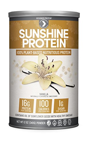 Designer Protein Sunshine 100% Plant-Based Nutritious Protein, Vanilla, 12 Ounce