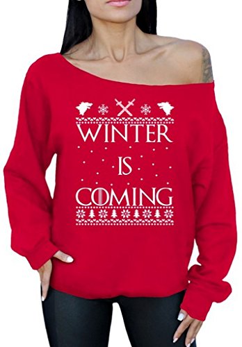 -. Title : Winter Is Coming Off the Shoulder Oversized Sweatshirt Ugly Christmas Sweater