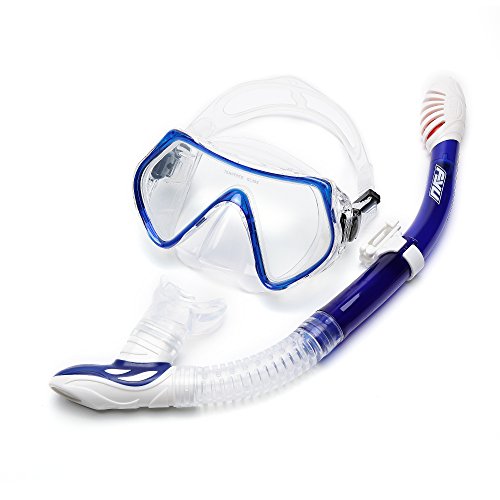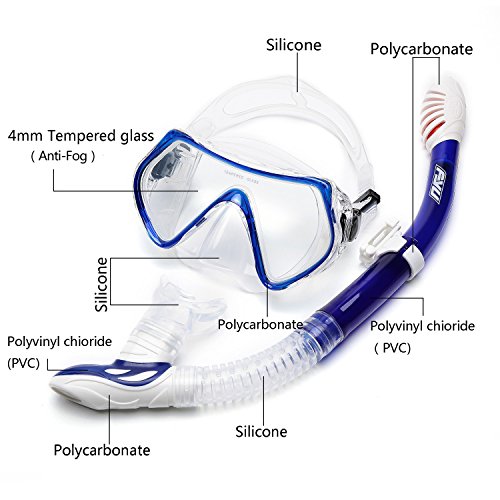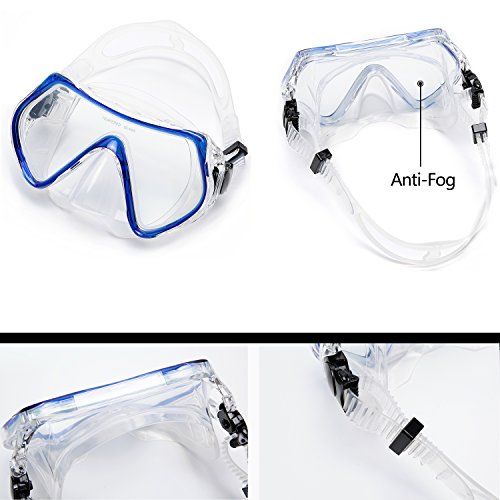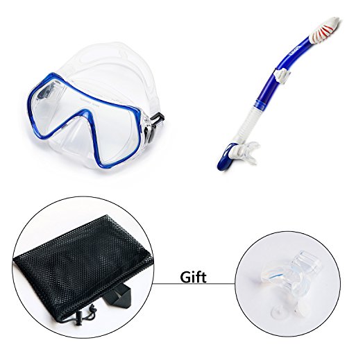 Diving Snorkeling Mask Snorkel Set-Anti-Fog Mask, Snorkel with Silicone Mouthpiece Perfect for Diving (Blue)