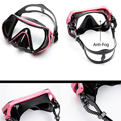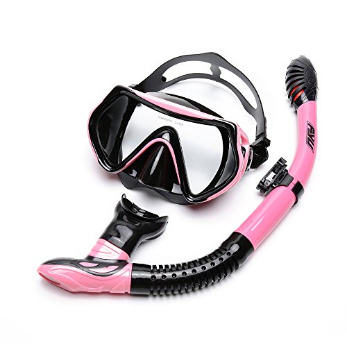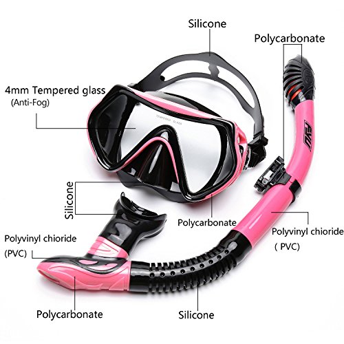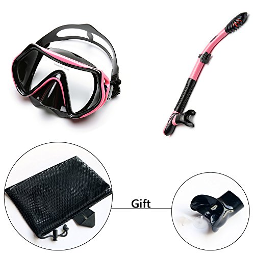 Diving Snorkeling Mask Snorkel Set-Anti-Fog Mask, Snorkel with Silicone Mouthpiece Perfect for Diving (Pink&Black)