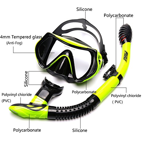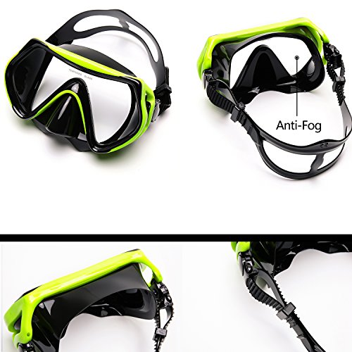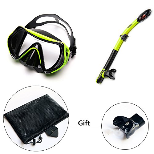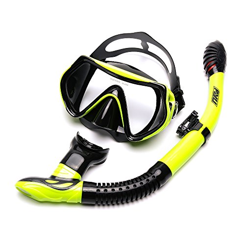 Diving Snorkeling Mask Snorkel Set-Anti-Fog Mask, Snorkel with Silicone Mouthpiece Perfect for Diving (Yellow&Black)