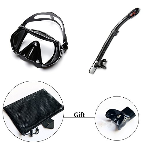 Diving Snorkeling Mask Snorkel Set-Anti-Fog Mask, Snorkel with Silicone Mouthpiece Perfect for Diving (Black)