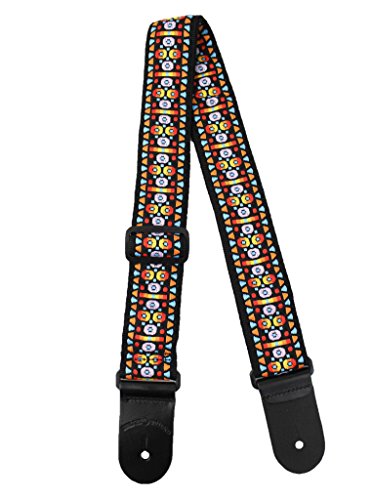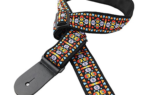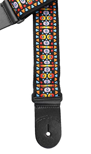 -. Feature : Hand Sewn Guitar or Bass Strap 2" Wide, adjustable from 32"-55" / Jacquard woven classic stained glass design / High quality webbing backing material / Thick leather end caps / Non-scratching poly adjusters