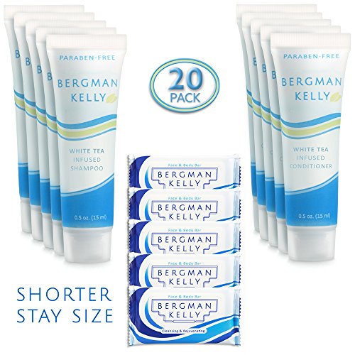 MAKE YOUR GUESTS FEEL AT HOME- The lightly white tea scented Bergman Kelly hotel shampoo, conditioner and soap bundle packs perfect for your travel guests, and is a classic amenity for your hospitality bathroom.