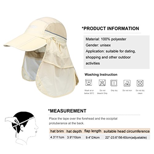 -. Feature : High Quality- 100% polyester with lightweight and splash-proof performance, ultra skin-friendly, breathable, moisture-wicking and comfortable to wear. / Considerate Visor- Designed with widened sweatband, not only absorbs plenty of sweat to prevent your forehead from sweating, but also isolates UV rays to protect your eyes against dazzling sunlight. / Perfect Detail- Comes with adjustable buckle and reflective stripe on both sides, allows you to freely adjust the tightness according to your own need, also keeps you safe with the good visibility even in dark night. / Great Performance- Featured by multi-functional storage bag and foldable design, able to serve as a neck flap to offer all-round sun protection for your neck and face, also capable to fold into the storage bag for easy carry. / Widely Used- Simple but trendy appearance, can be used as peaked cap and face flap hat, also ideal for various casual occasions like dating, shopping, traveling, mountain climbing, party or other outdoor activities.