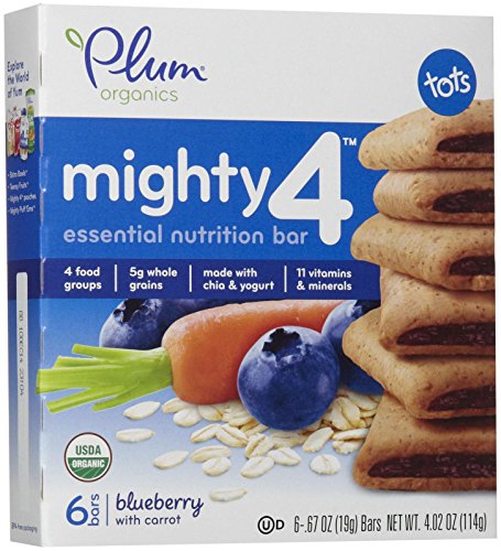 -. Binding : Health and Beauty -. Brand : Plum Organics -. EAN : 0846675005540 -. Feature : Mighty is as mighty eats!Make every bite mighty with a whole grain snack that has fruit and veggie goodness baked right in / Plum Organics -. IsAdultProduct : 0 -. Label : Campbell Sales Company -. Manufacturer : Campbell Sales Company -. MPN : 200460080085 -. NumberOfItems : 1 -. PackageQuantity : 1 -. PartNumber : 200460080085 -. ProductGroup : Health and Beauty -. ProductTypeName : HEALTH_PERSONAL_CARE -. Publisher : Campbell Sales Company -. Size : 4.02 oz -. Studio : Campbell Sales Company -. Title : Plum Organics Tots Mighty 4 Bars - Blueberry with Carrot - 4.02 oz -. UPC : 846675005540