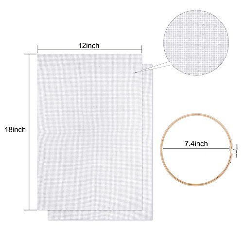 Full Set of Embroidery Starter Kit Including 5 Pieces Bamboo Embroidery Hoops, 50 Color Threads, 4 Pieces 12 by 18-Inch 14 Count Classic Reserve Aida and Cross Stitch Tool Kit