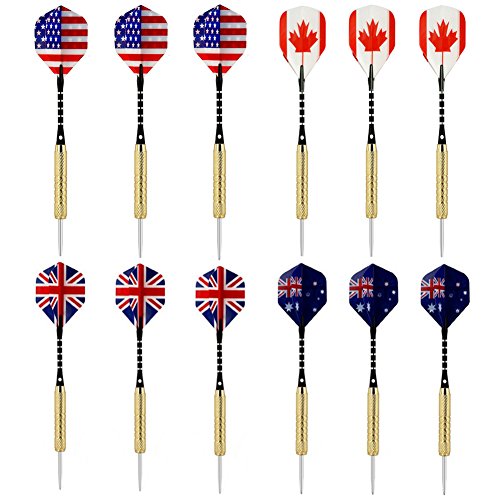 Daixers 12 PCS Steel Tip Darts With 4 Styles National Flag Flights,18 Grams