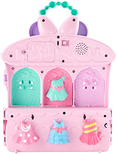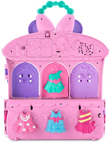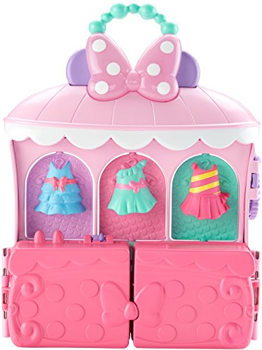 -. Feature : Playset with one 5-inch (12.7cm) Minnie Mouse figure / Three spinning dress & bow displays / Lights, sounds & phrases / Sings an original song / Includes 4 dresses, 2 bows, and 2 pairs of shoes