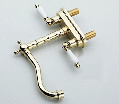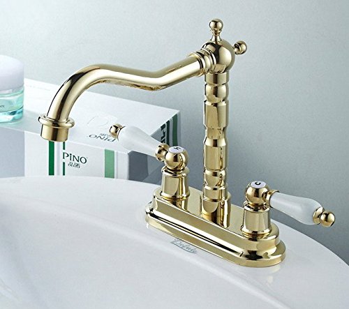 -. Title : Danluolan 4 Inch Centerset Gold Brass Bathroom Sink Faucet Dual Knobs Basin Mixer Tap