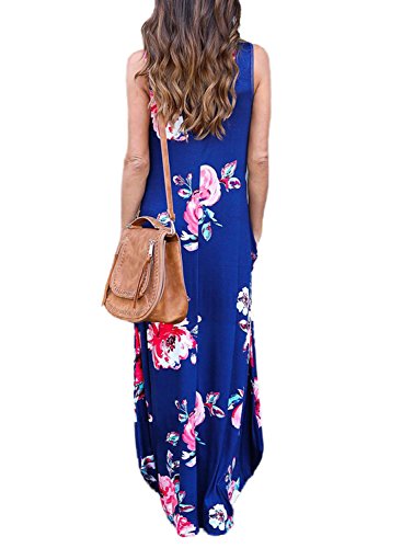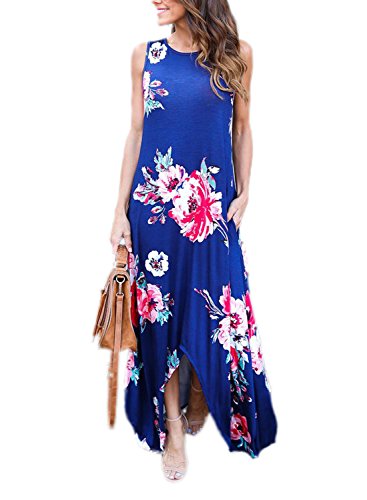Dokotoo Womens Ladies Summer Casual Sexy Maternity Plus Size Floral Beach Dress Maxi Long Dresses for Work Blue Large